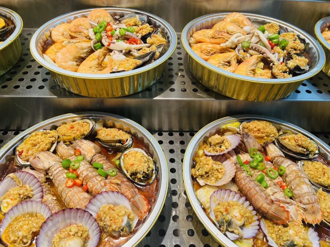 尤为值得关注的是永辉在海鲜消费场景上所做的创新体验。现场制售的“海鲜家庭分享桶”与“元气蒸”项目形成了巧妙的风味互补。一边是现场加工、热辣馥郁的分享大菜,选用波士顿龙虾、小青龙等鲜活食材;另一边则是即时蒸煮、锁住原味的贝类与虾蟹,主打食材的本真鲜甜。这种“现制热出、即选即享”的模式,将后厨的锅气与烟火感直接传递至卖场,让海鲜消费从静态选购转变为动态体验,为家庭餐桌提供了一个新鲜、热闹且充满仪式感的选择。
